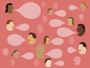街を歩いていると、大きな声で元気よく会話しているのは、